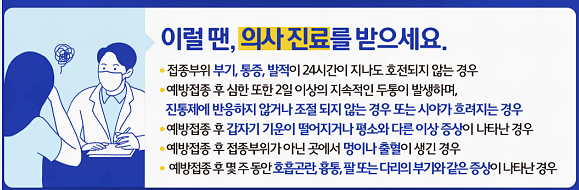 백신은 몸이 항체를 생산하도록 하는 것이며 몸에서는 실제 감염과 백신을 구별할 수 없기에 몸을 보호하도록 염증성 화학물질을 방출하기 때문에 백신 접종 후 미열이나 근육통, 피로나 두통 증상은 부작용이라기 보다 면역반응이 맞는 겁니다.