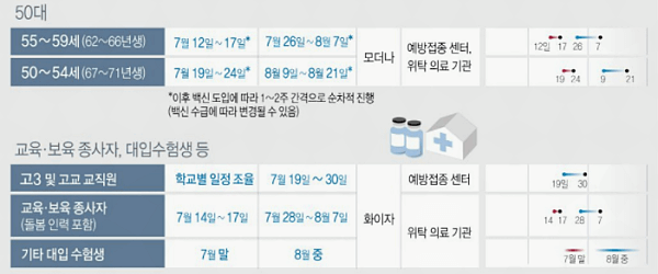 -55~59세 : 모더나 7월 26일부터 접종