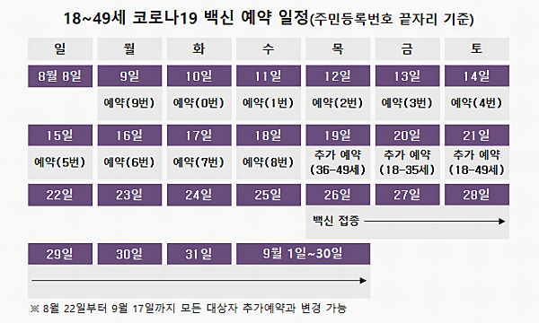 *코로나 19 백신 예약을 못했다면 22일부터 9월 17일까지 예약 및 기존 예약자들도 날짜 변경을 할 수 있다고 합니다.