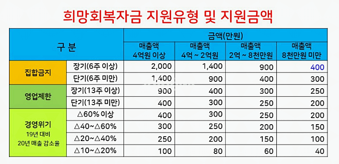 하단에 자세한 지원금액을 정리하겠지만, 영업제한 조치를 받았다면 최대 900 민 원이 지원되며 집합 제한 조치를 받은 경우 최대 2천만 원까지 지원이 이뤄집니다.