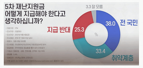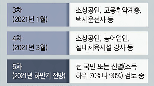 5차 재난지원금 소득 하위 70% VS 전 국민(1인당 30만 원)